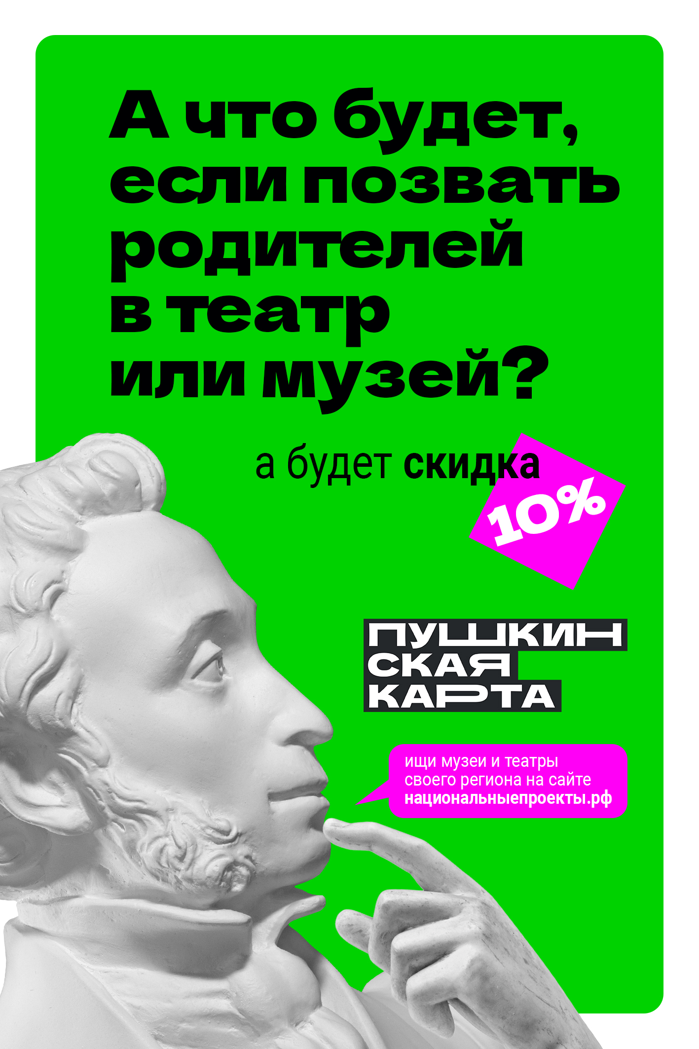 27 декабря, в преддверии новогодних праздников, стартует всероссийская акция «Веди родителей в музей». До 11 января 2026 года владельцы Пушкинской карты смогут не только бесплатно посещать музеи, театры, филармонии и концертные залы, но и получить скидку 10% на покупку двух билетов для своих родителей. Акция организована АНО «Национальные приоритеты» при поддержке Минкультуры России.